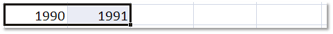 Excel определив закономерность заполнит блок годами с 1990 по 1996.