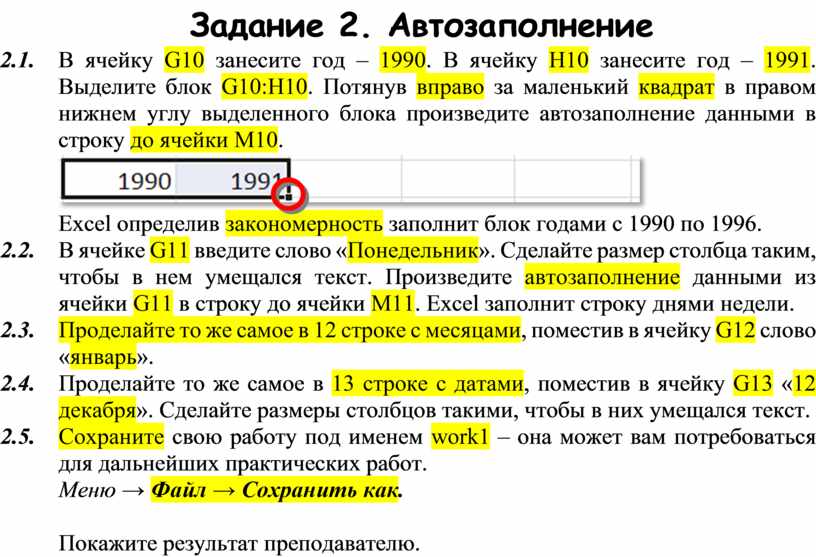 2.1. В ячейку G10 занесите год – 1990. В ячейку Н10 занесите год – 1991. Выделите блок G10:Н10. Потянув вправо за маленький квадрат в правом нижнем углу выделенного блока произведите автозаполнение данными в строку до ячейки M10.