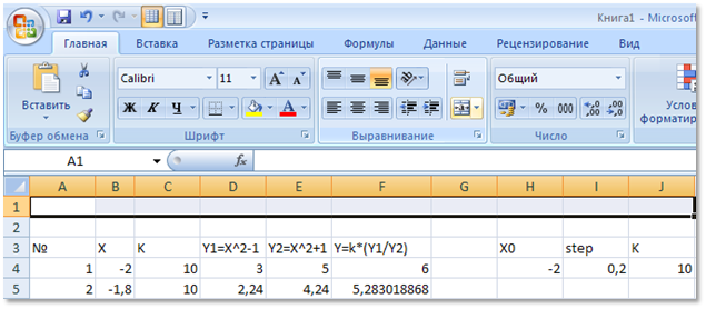 2.2. Объедините в первых двух строках требуемые ячейки (см. рис. 2):