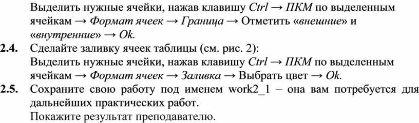 2.4. Сделайте заливку ячеек таблицы (см. рис. 2):
