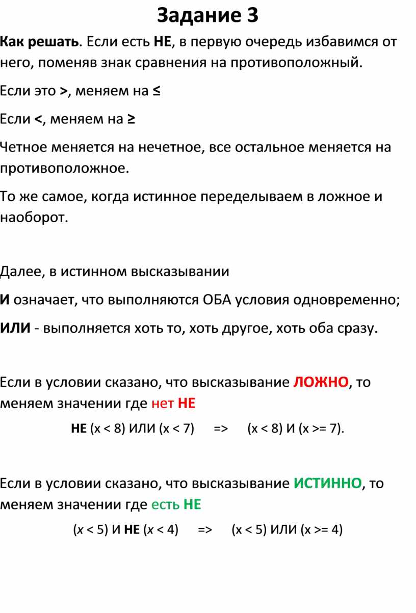 Если в условии сказано, что высказывание ИСТИННО, то меняем значении где есть НЕ