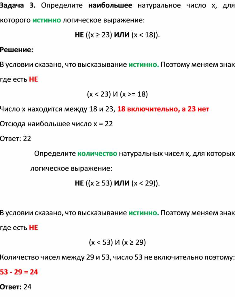 Задача 3. Напишите наибольшее натуральное число x, для которого истинно высказывание: