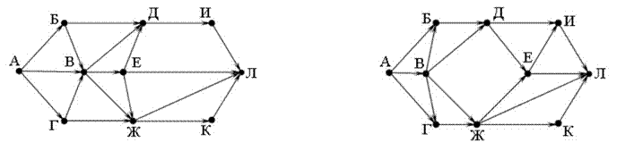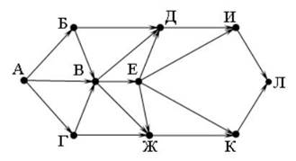 2. На рисунке – схема дорог, связывающих города А, Б, В, Г, Д, Е, Ж, И, К, Л. По каждой дороге можно двигаться только в одном направлении, указанном стрелкой. Сколько существует различных путей из города А в город Л?