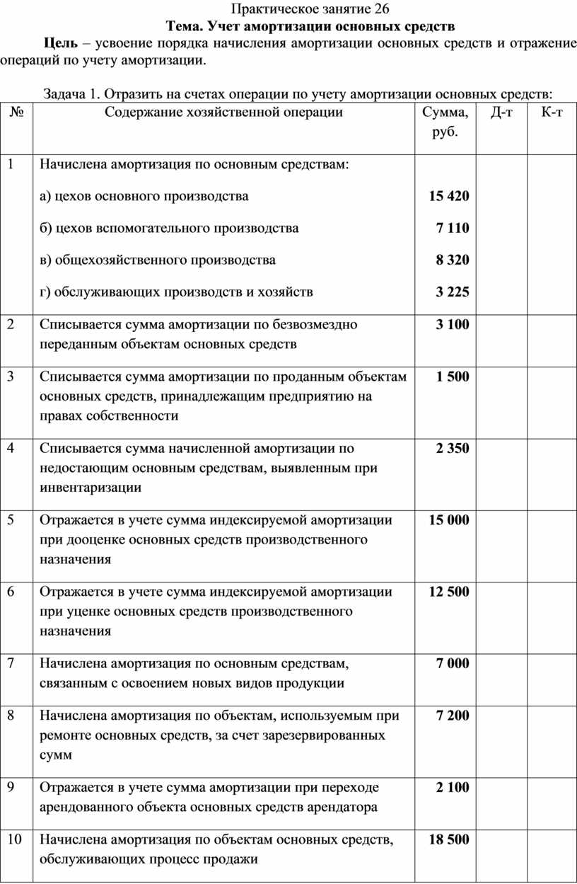 Цель – усвоение порядка начисления амортизации основных средств и отражение операций по учету амортизации.