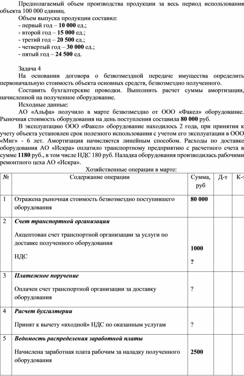 АО «Альфа» получило в марте безвозмездно от ООО «Факел» оборудование. Рыночная стоимость оборудования на день поступления составила 80 000 руб.