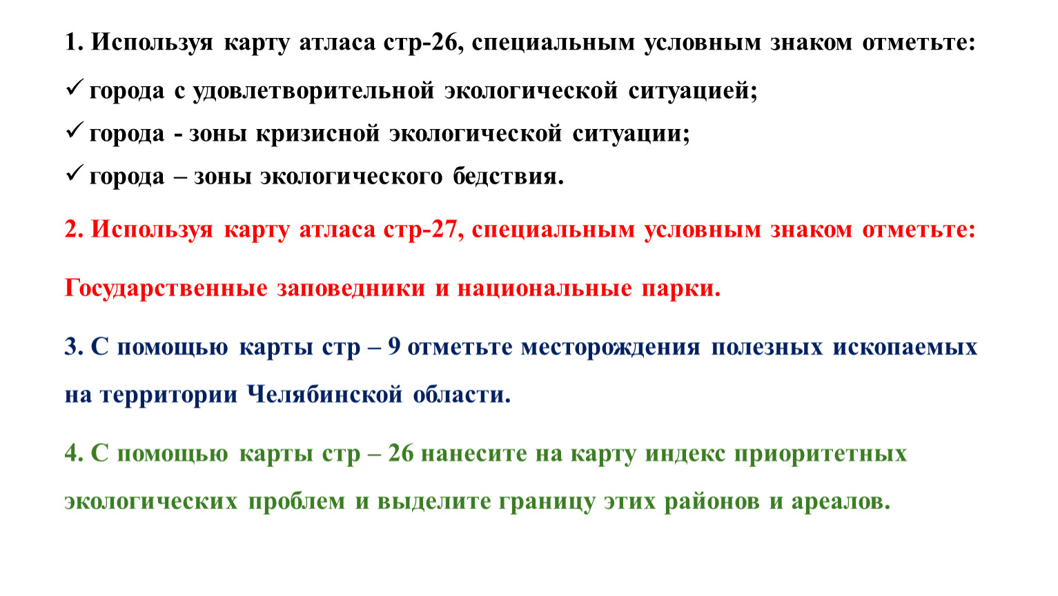 1. Используя карту атласа стр-26, специальным условным знаком отметьте:
