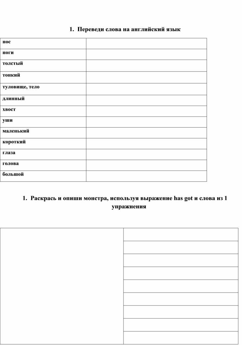 1. Переведи слова на английский язык