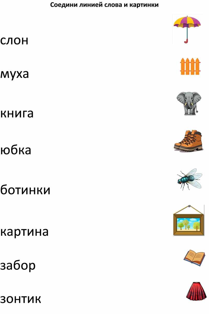 Соедини линией слова и картинки