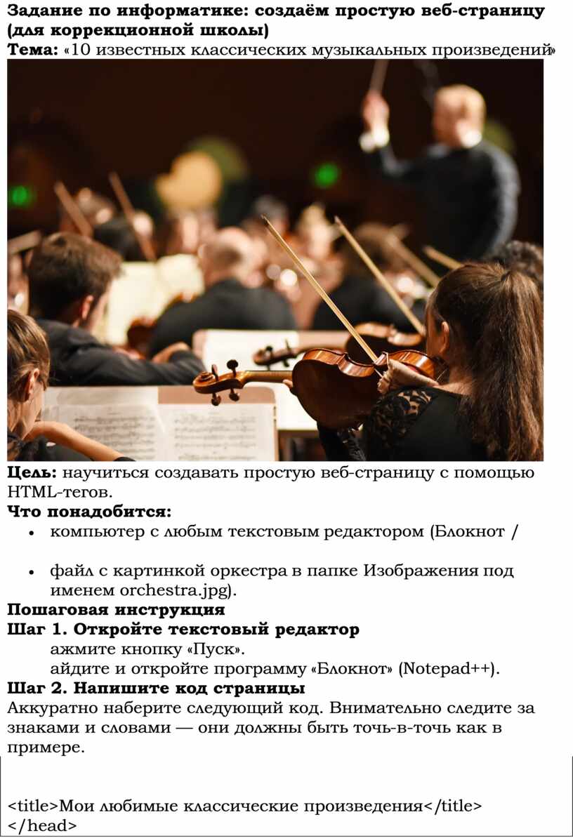 Задание по информатике: создаём простую веб‑страницу (для коррекционной школы)