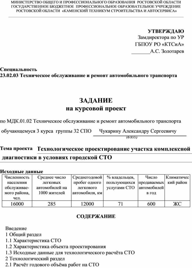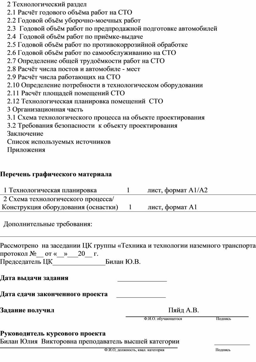 Технологическое проектирование участка по обслу- |