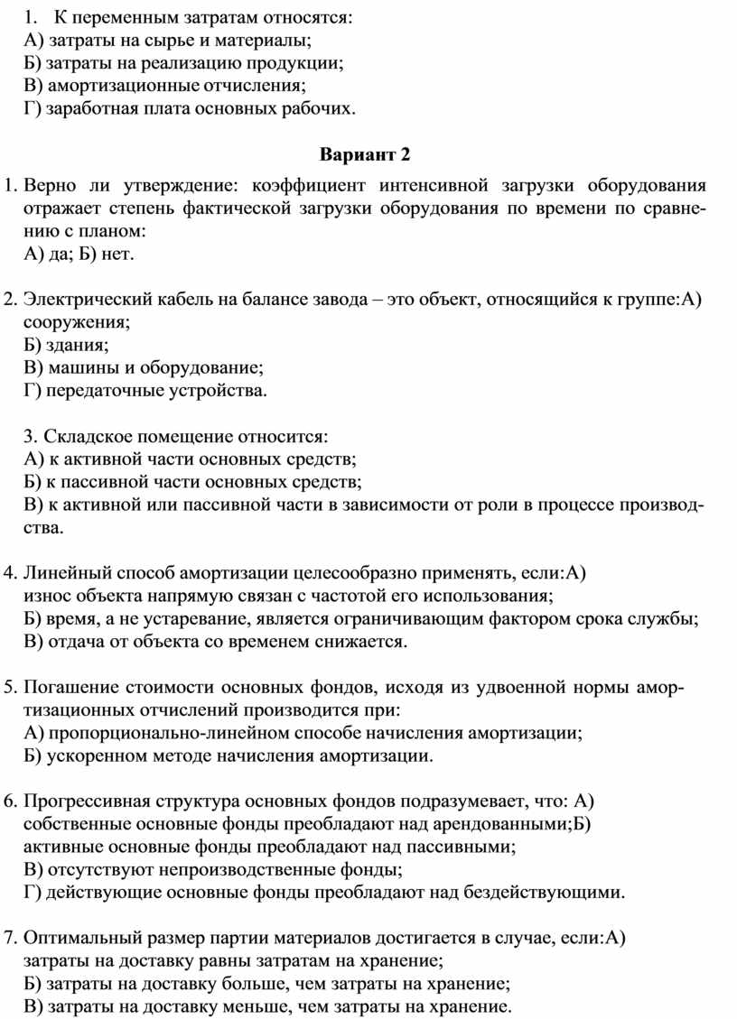 1. Виды основных производственных фондов, которые не относятся к активным: А) станки;
