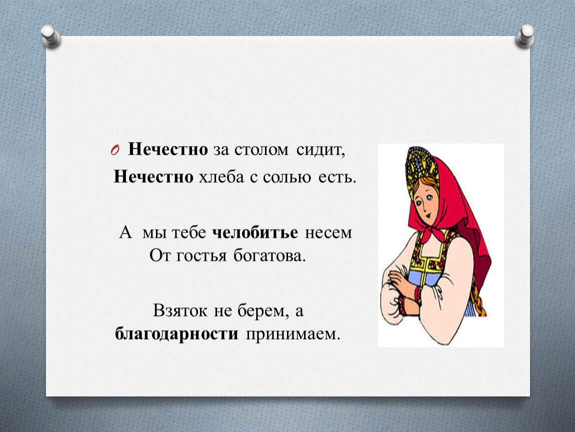 Нечестно хлеба с солью есть.
