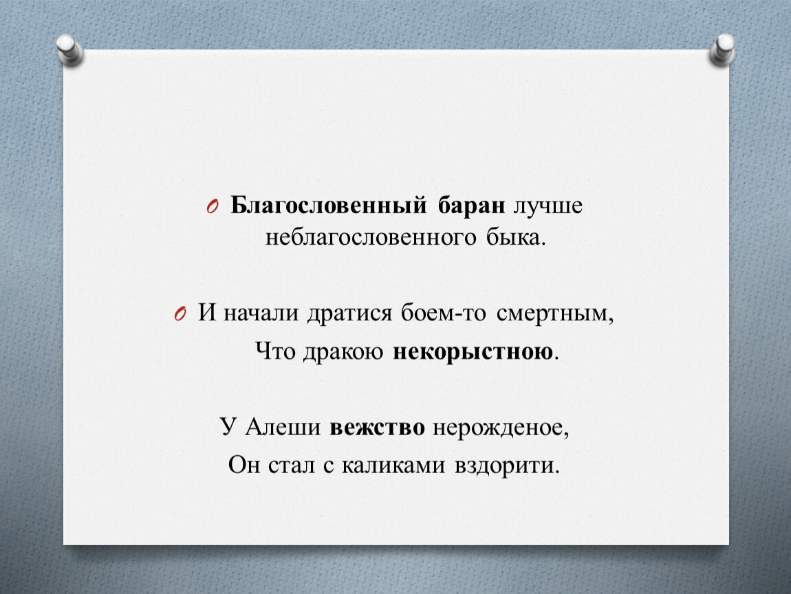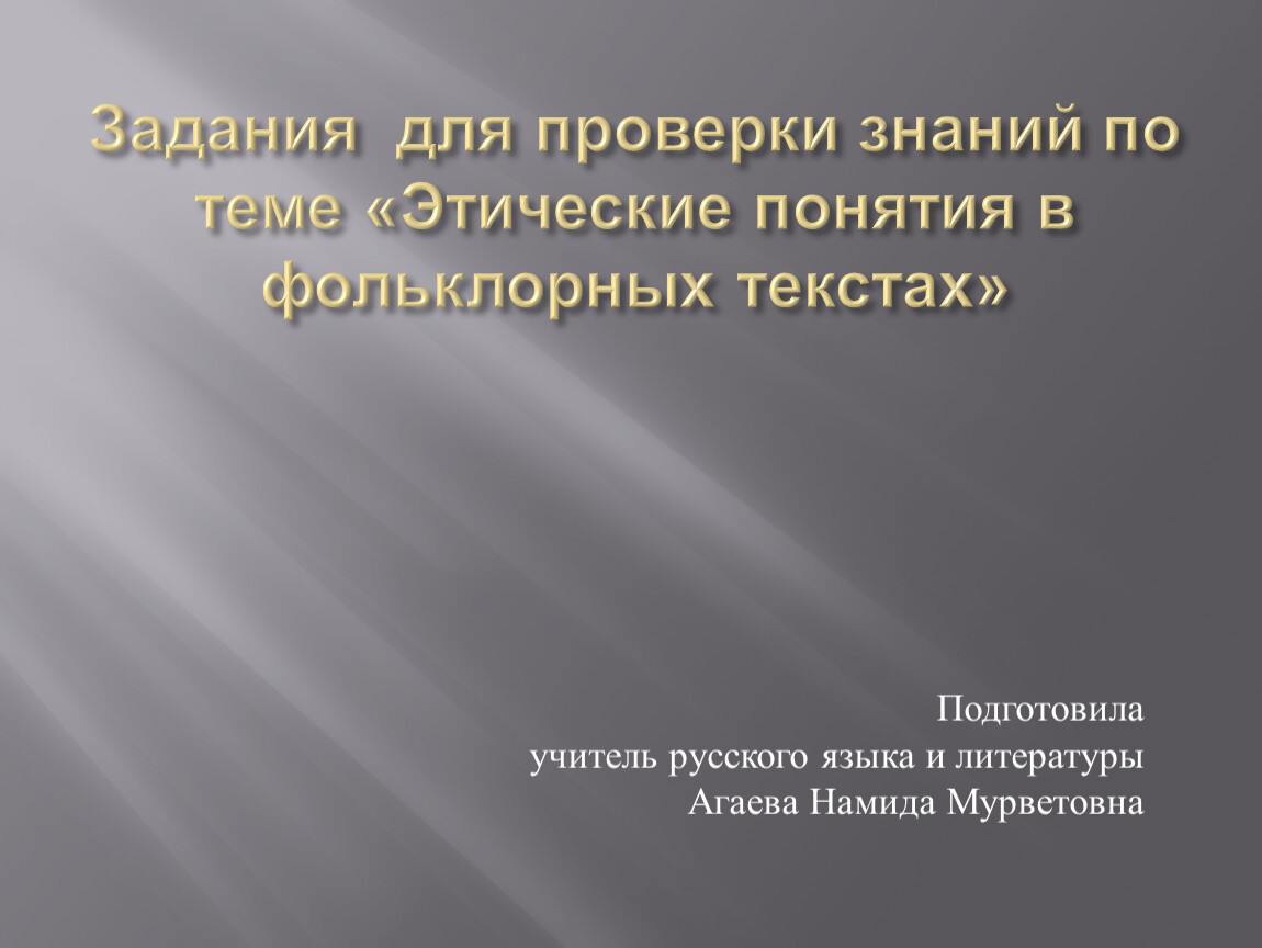 Задания для проверки знаний по теме «Этические понятия в фольклорных текстах»