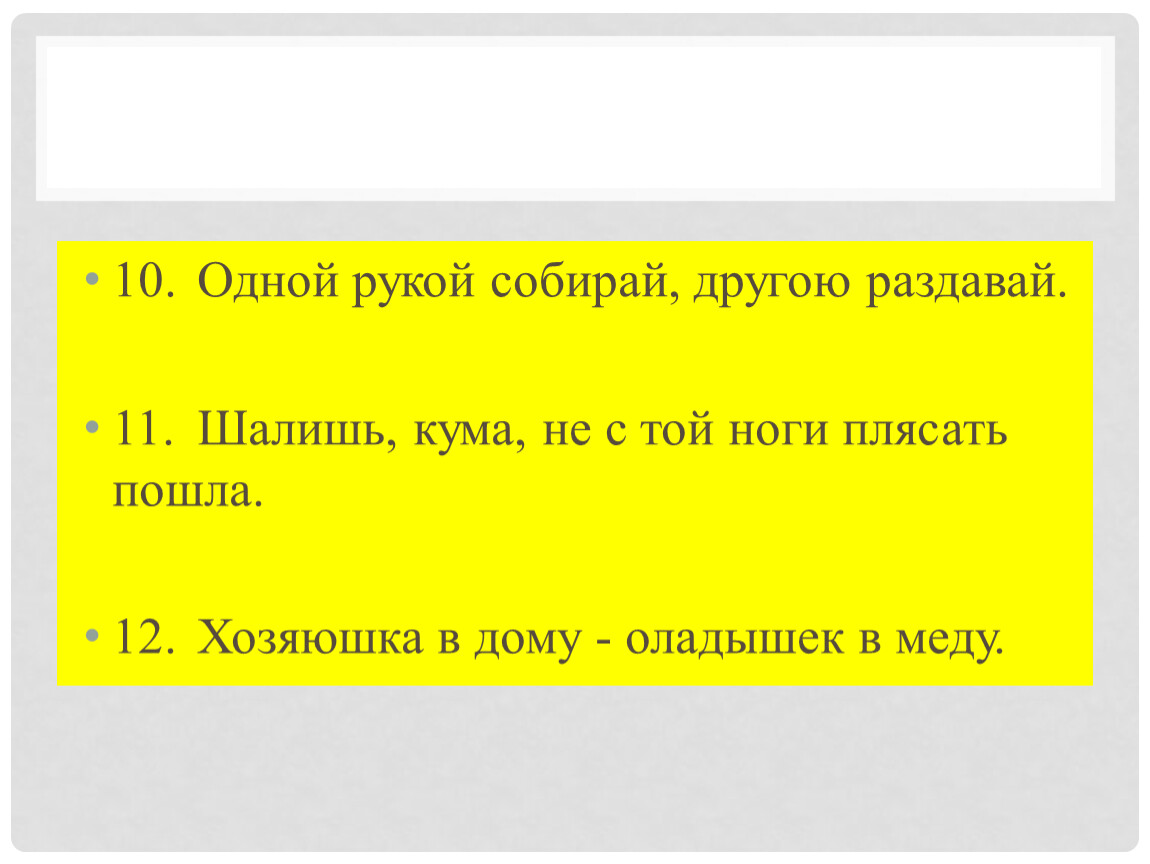 10. Одной рукой собирай, другою раздавай.