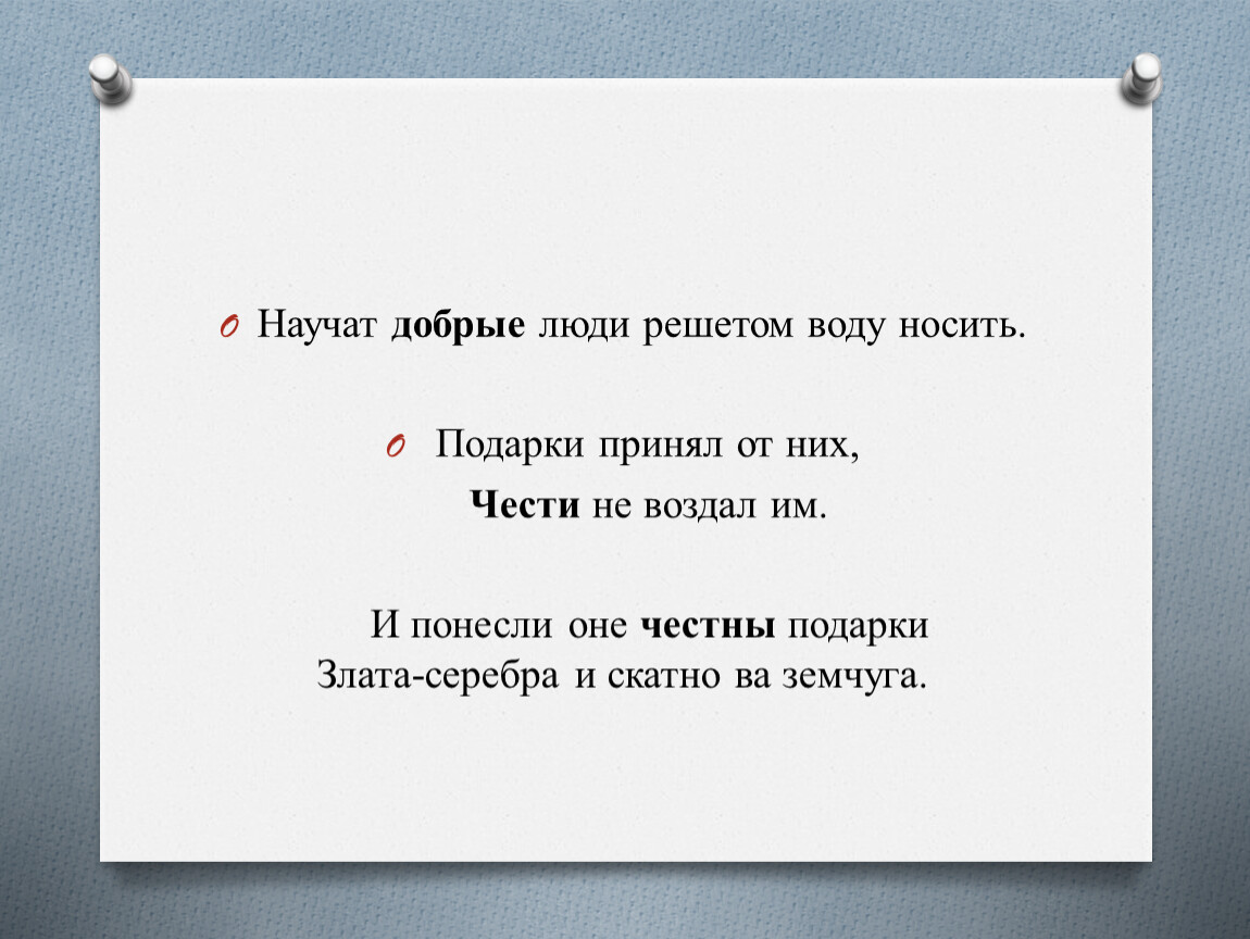 И понесли оне честны подарки Злата-серебра и скатно ва земчуга.