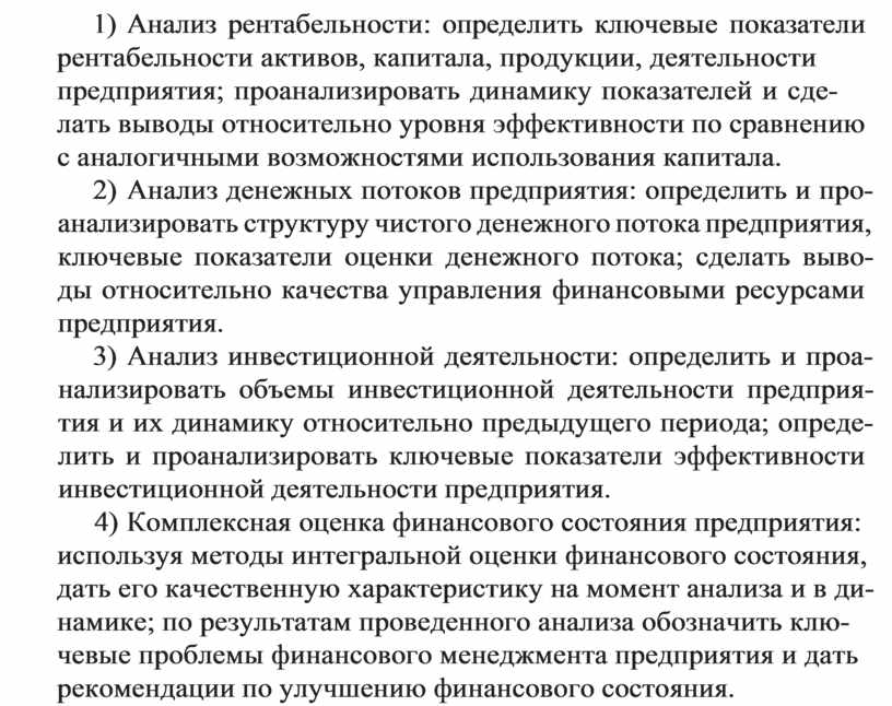 5) Анализ инвестиционной деятельности: определить и проа- нализировать объемы инвестиционной деятельности предприя- тия и их динамику относительно предыдущего периода; опреде- лить и проанализировать ключевые показатели эффективности инвестиционной деятельности предприятия.