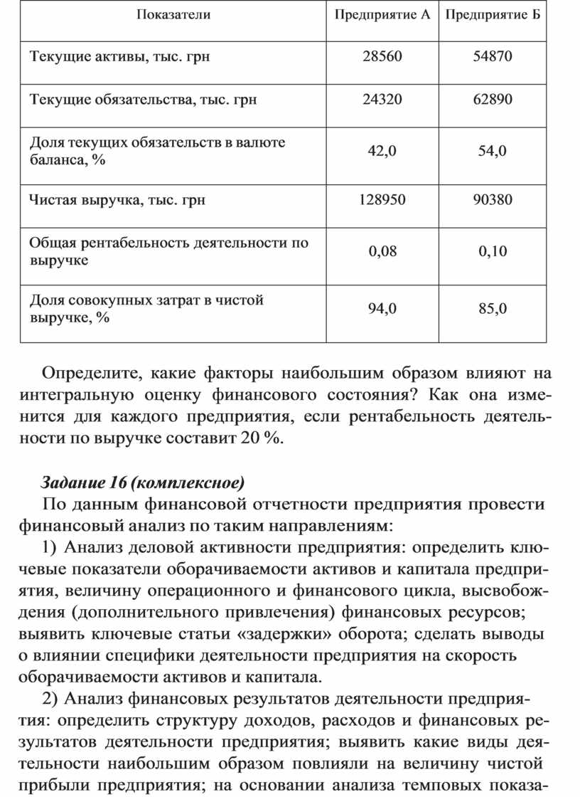 Определите, какие факторы наибольшим образом влияют на интегральную оценку финансового состояния? Как она изме- нится для каждого предприятия, если рентабельность деятель- ности по выручке составит 20 %.