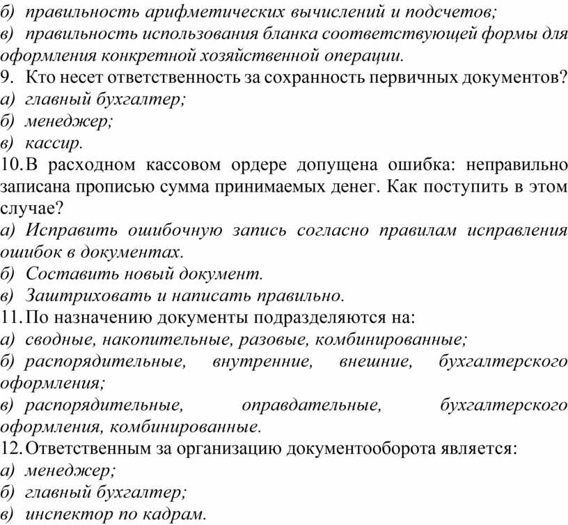 12. Ответственным за организацию документооборота является: