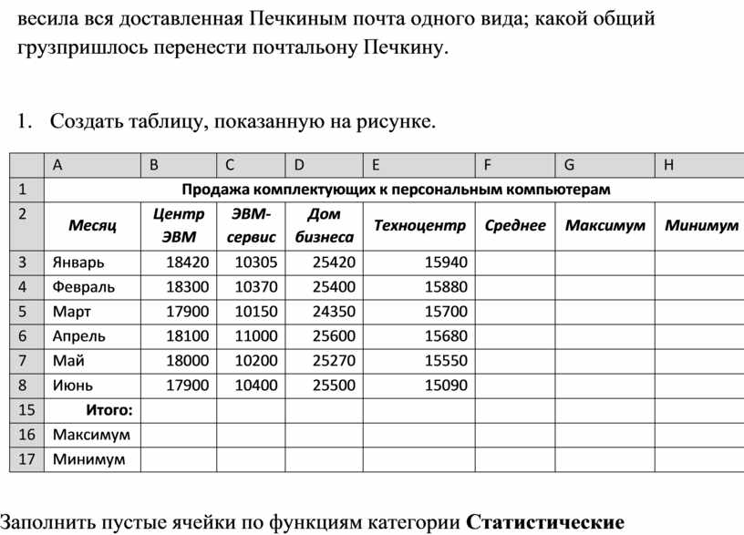 Решить задачу путём построения ЭТ. Исходные данные для заполнения таблицы подобрать самостоятельно (не менее 10 строк).
