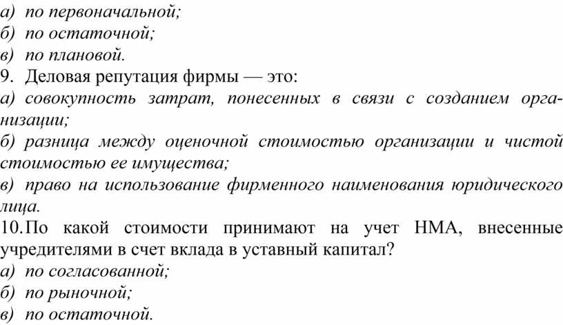 10. По какой стоимости принимают на учет НМА, внесенные учредителями в счет вклада в уставный капитал?