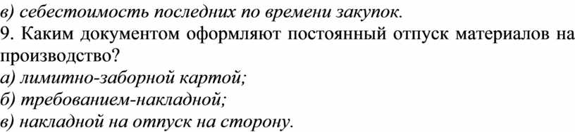 9. Каким документом оформляют постоянный отпуск материалов на производство?