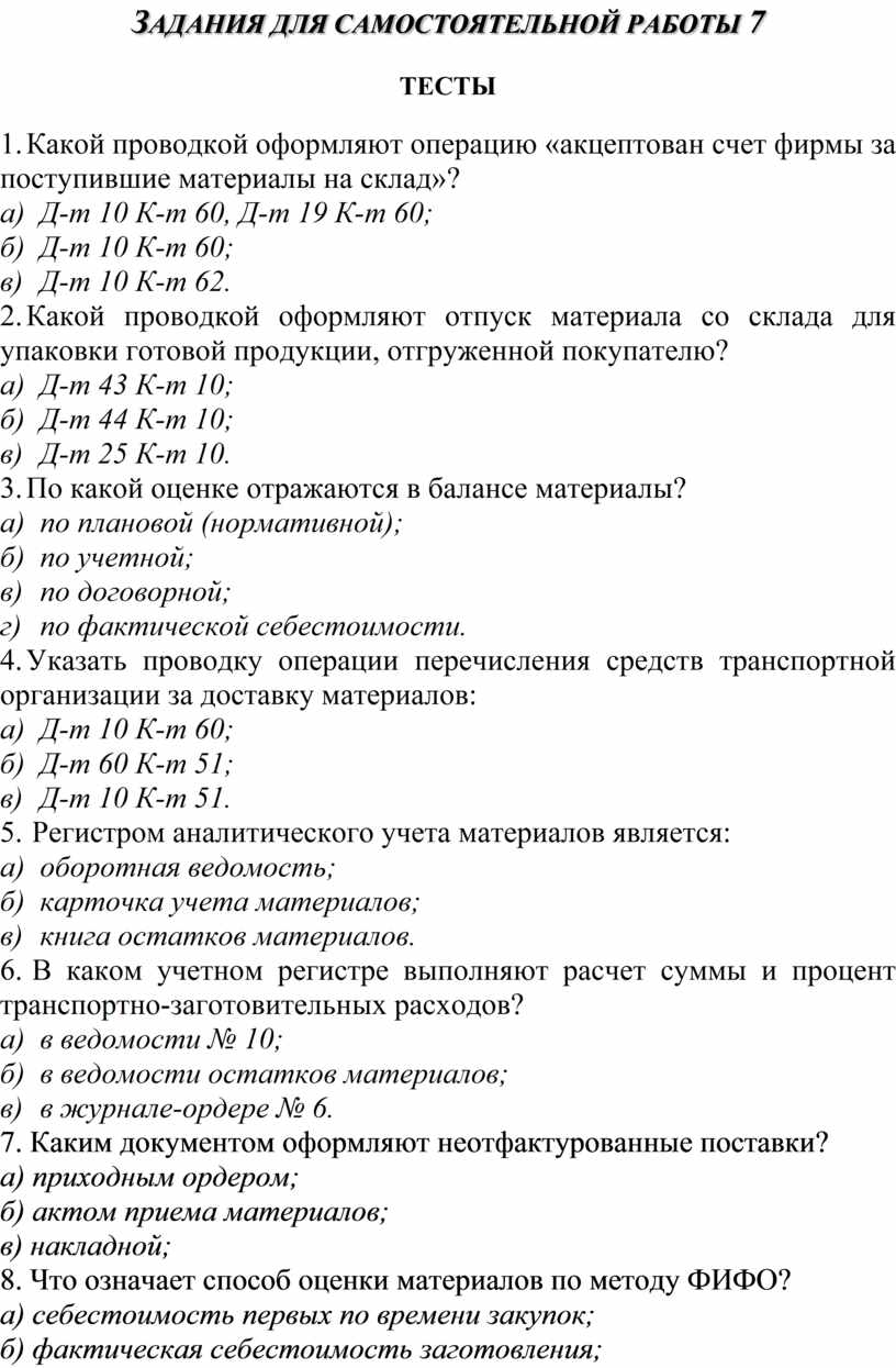 Задания для самостоятельной работы 7