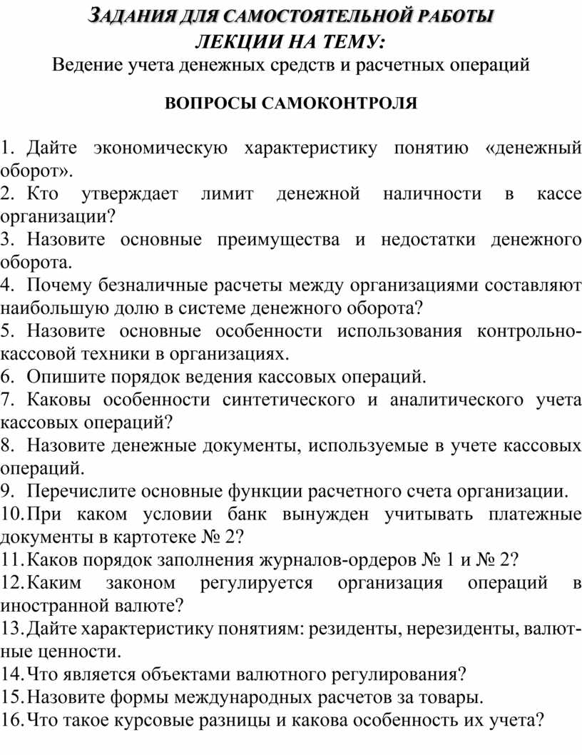 1. Дайте экономическую характеристику понятию «денежный оборот».
