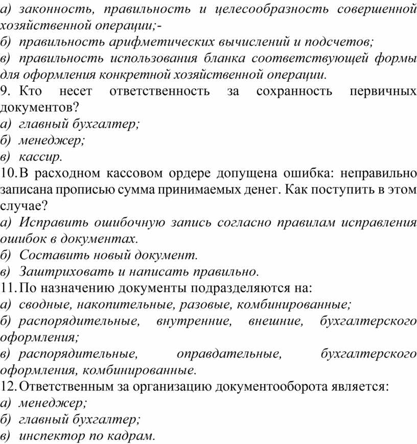 10. В расходном кассовом ордере допущена ошибка: неправильно записана прописью сумма принимаемых денег. Как поступить в этом случае?