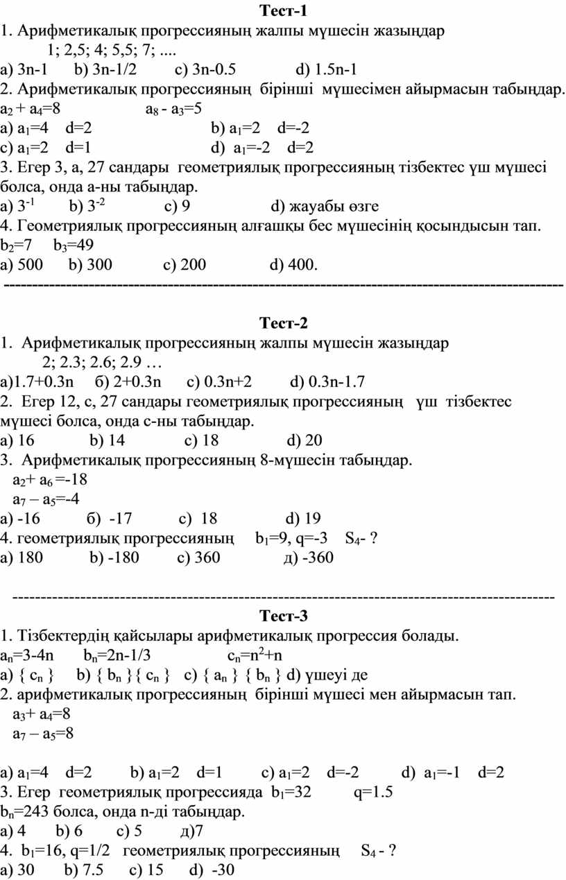 1. Тізбектердің қайсылары арифметикалық прогрессия болады.