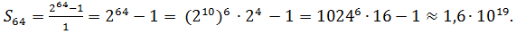 до 64-го поля. Найдите количество зерен, которое просил изобретатель у принца. (Решение: