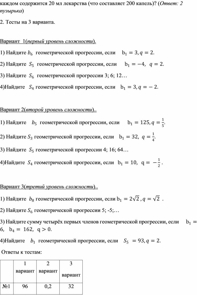 Задание Найдите в геометрической прогрессии (1) сумму первых двух , первых трех, первых пяти , первых двадцати ее членов. ( ответ: 3 , 7, 31 ...)
