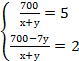 1-го поезда между ними будет 700 -7у километров, отсюда 2 – е уравнение:
