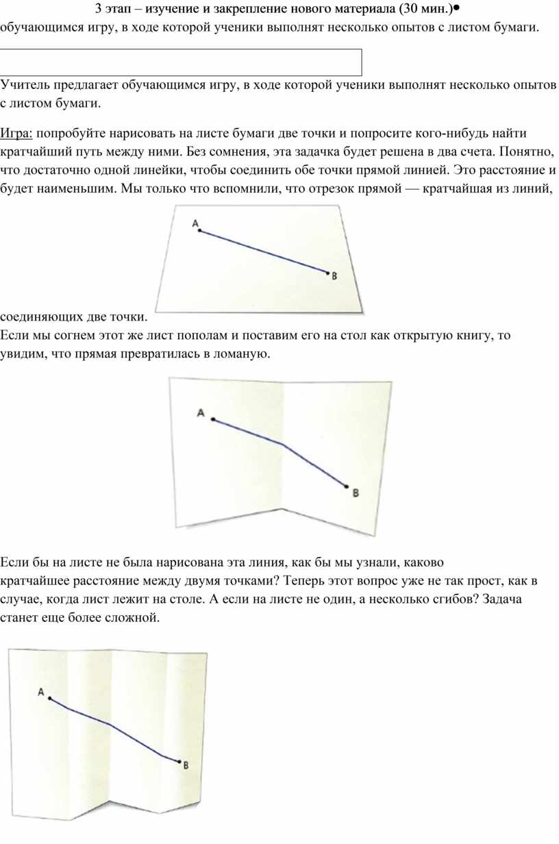 Если бы на листе не была нарисована эта линия, как бы мы узнали, каково кратчайшее расстояние между двумя точками? Теперь этот вопрос уже не так прост, как в случае, когда лист лежит на столе. А если на листе не один, а несколько сгибов? Задача станет еще более сложной.