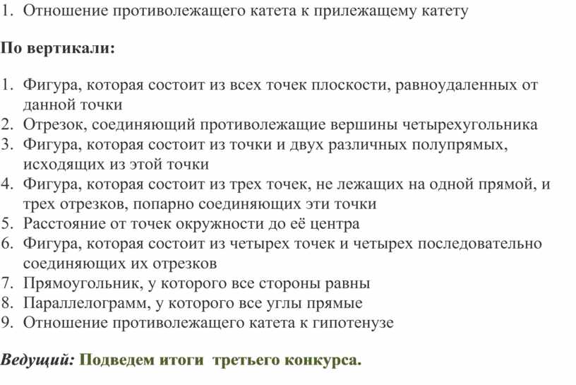 1. Фигура, которая состоит из всех точек плоскости, равноудаленных от данной точки