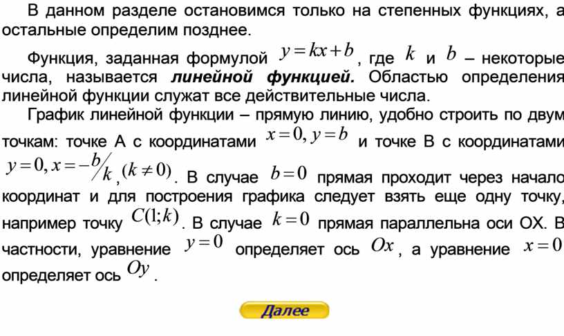В данном разделе остановимся только на степенных функциях, а остальные определим позднее.