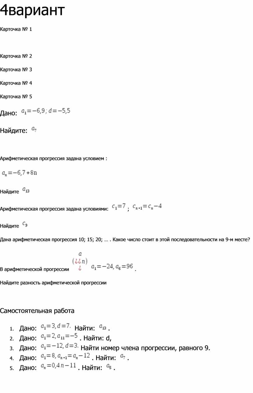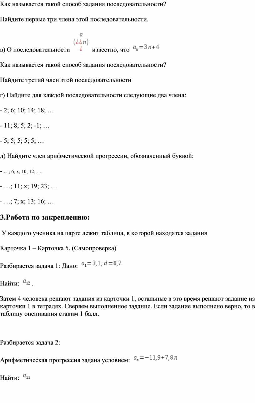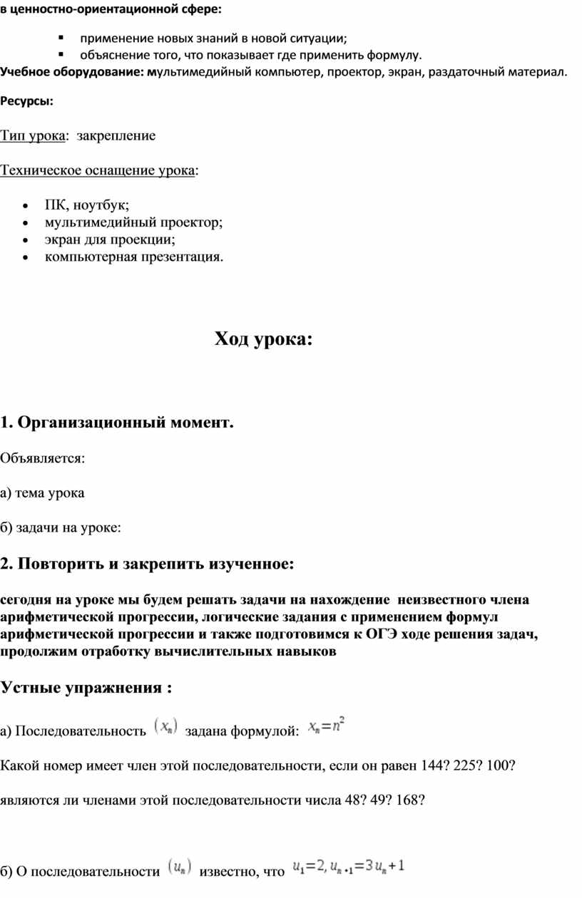 сегодня на уроке мы будем решать задачи на нахождение неизвестного члена арифметической прогрессии, логические задания с применением формул арифметической прогрессии и также подготовимся к ОГЭ ходе решения задач, продолжим отработку вычислительных навыков
