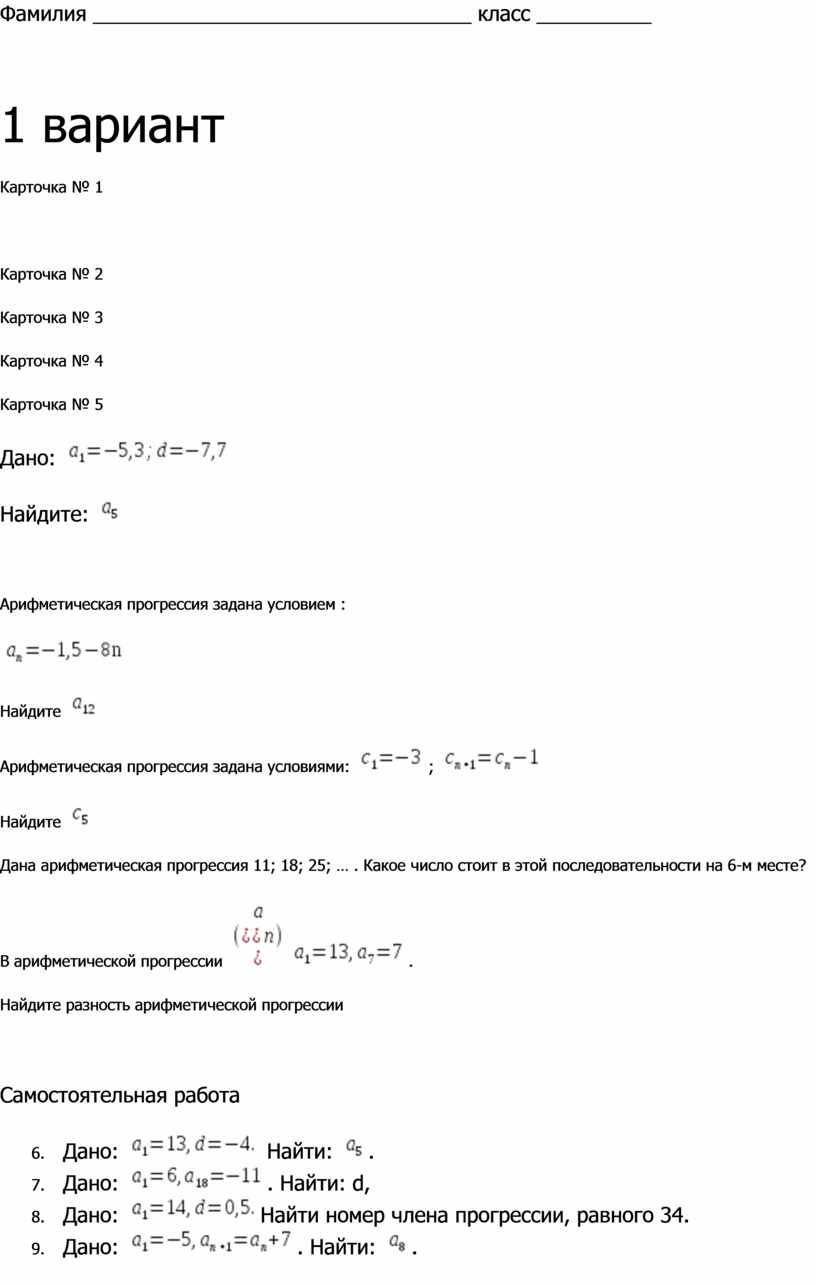 д) Найдите член арифметической прогрессии, обозначенный буквой:
