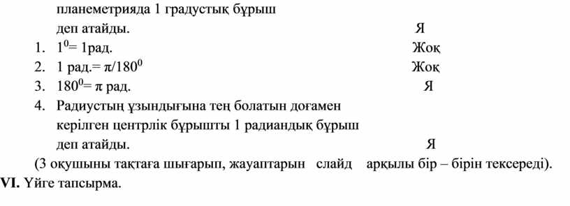3. 1 рад.= π/1800 Жоқ