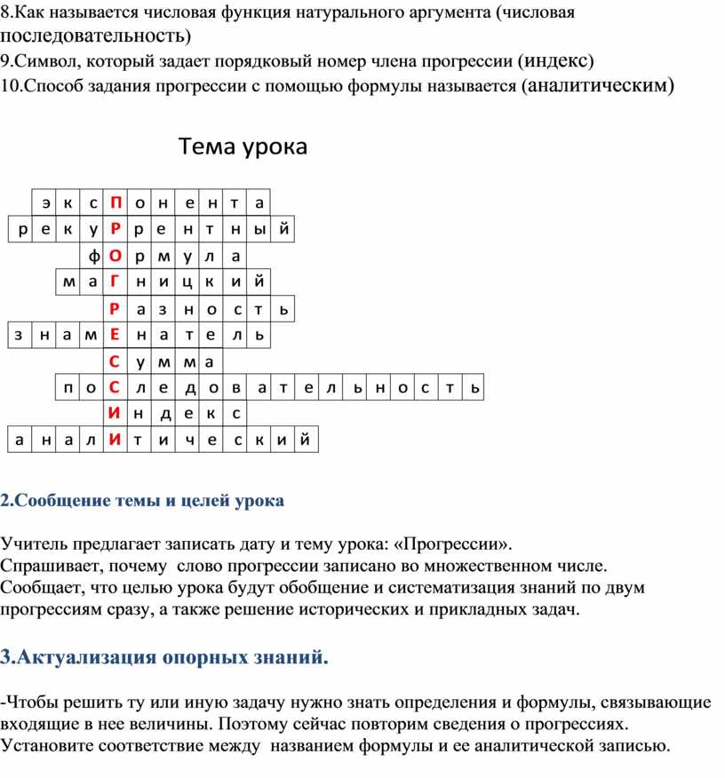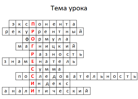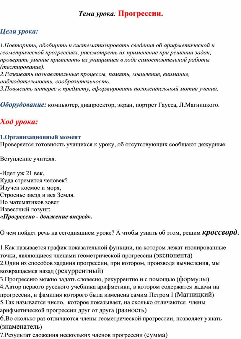 Учитель предлагает записать дату и тему урока: «Прогрессии».