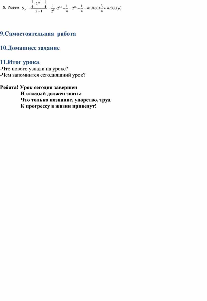 7.Результат сложения нескольких членов прогрессии (сумма)