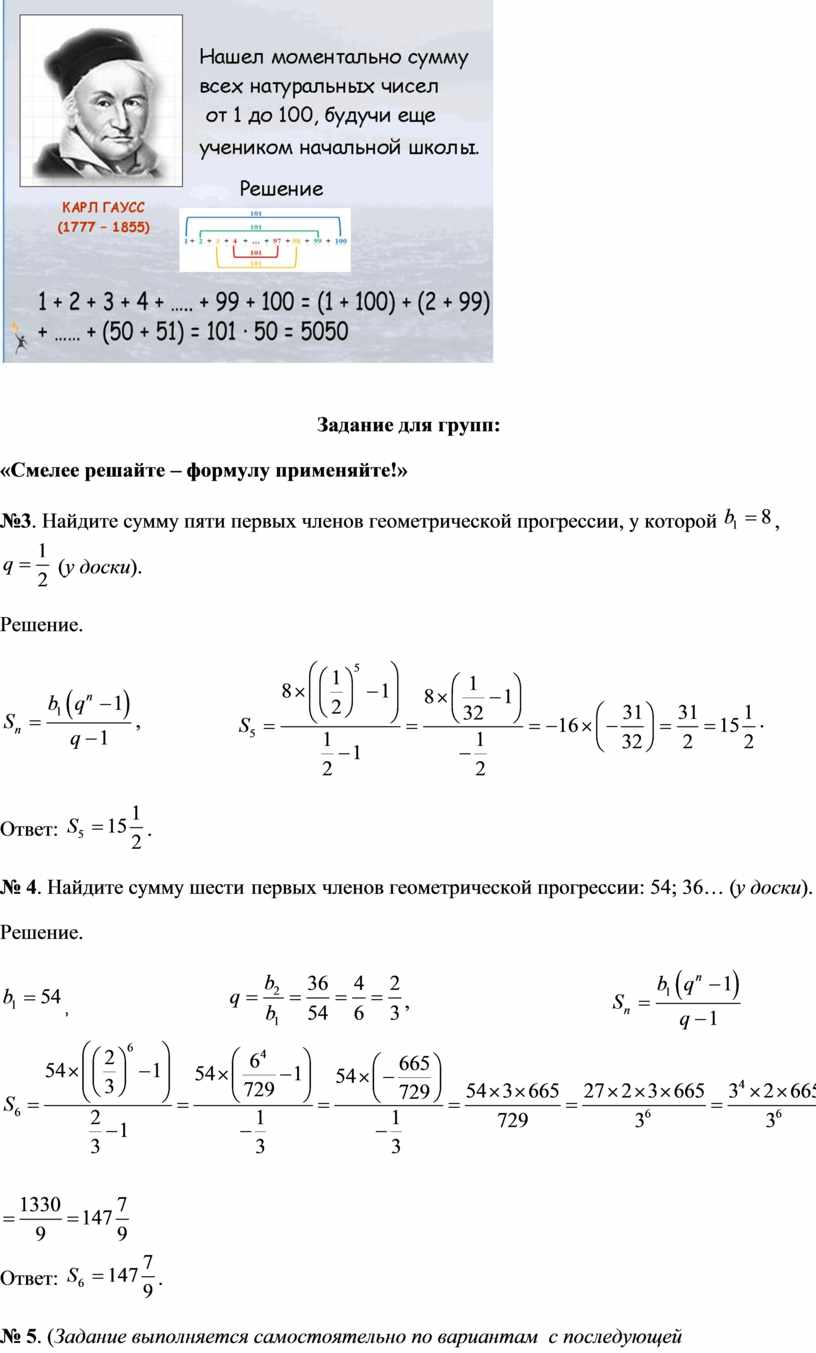 Задание для групп: «Смелее решайте – формулу применяйте!» №3. Найдите сумму