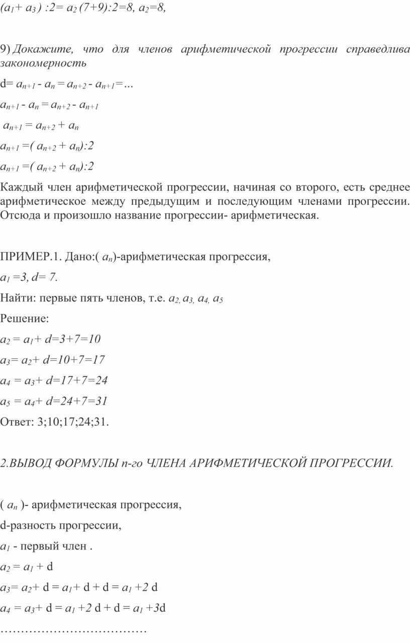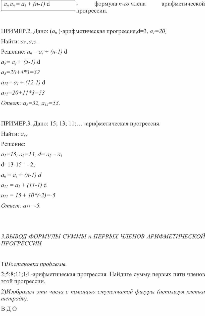 2.ВЫВОД ФОРМУЛЫ п-го ЧЛЕНА АРИФМЕТИЧЕСКОЙ ПРОГРЕССИИ.