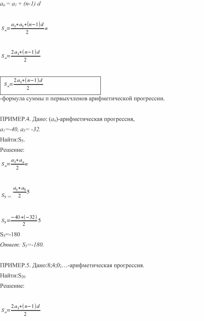 ПРИМЕР.5. Дано:8;4;0;…-арифметическая прогрессия.