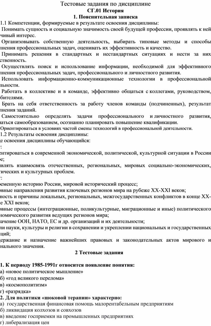 Тестовые задания по дисциплине