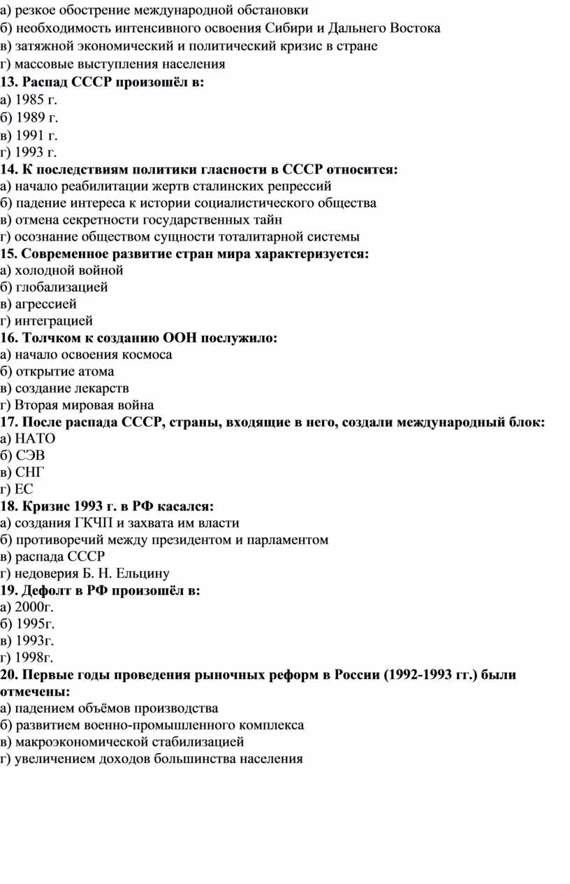 13. Распад СССР произошёл в: