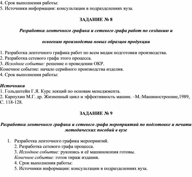 Разработка ленточного графика и сетевого графа мероприятий по подготовке и печати методических пособий в вузе