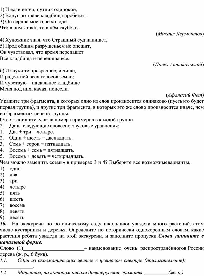 10. На экскурсии по ботаническому саду школьники увидели много растений, в том числе кустарники и деревья. Определите по исторически однокоренным словам, какие растения ребята увидели на этой экскурсии, и заполните пропуски. Слова запишите в начальной форме.