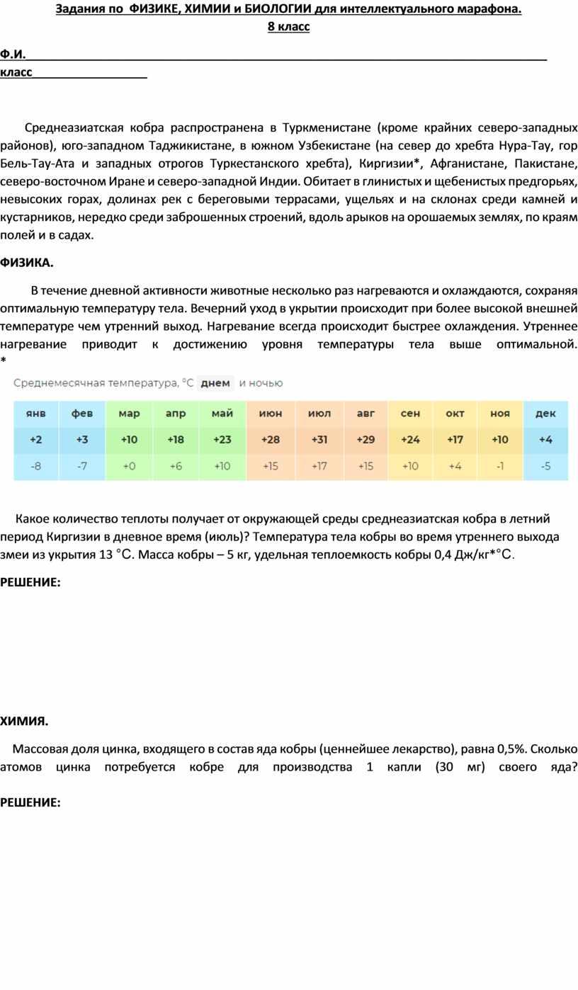 ХИМИИ и БИОЛОГИИ для интеллектуального марафона.