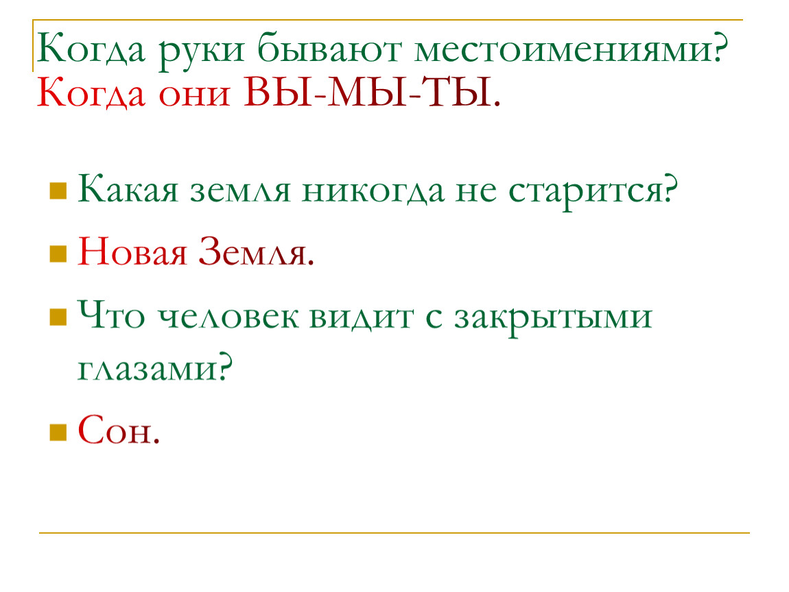 Когда руки бывают местоимениями?Когда они ВЫ-МЫ-ТЫ.