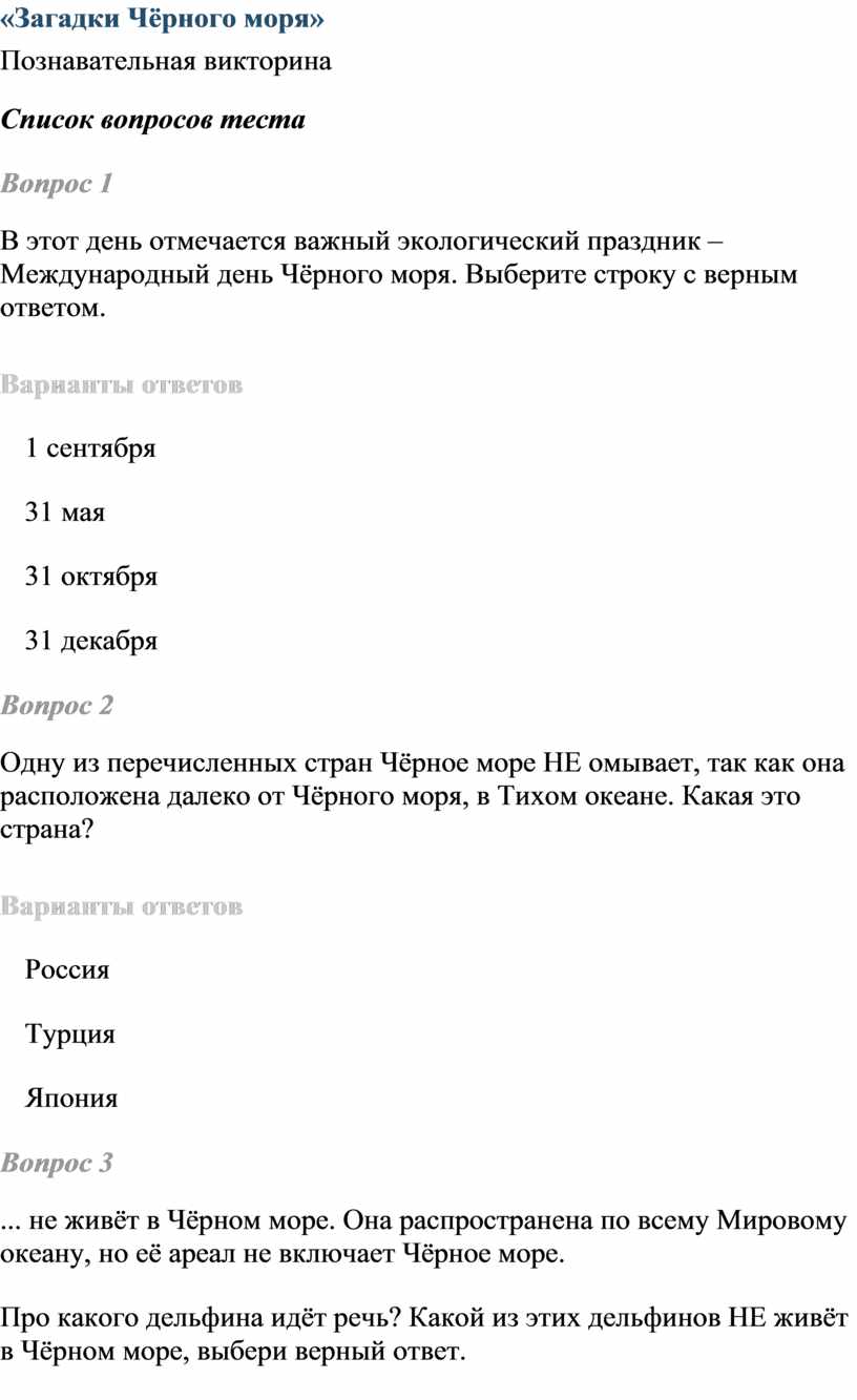 В этот день отмечается важный экологический праздник – Международный день Чёрного моря. Выберите строку с верным ответом.